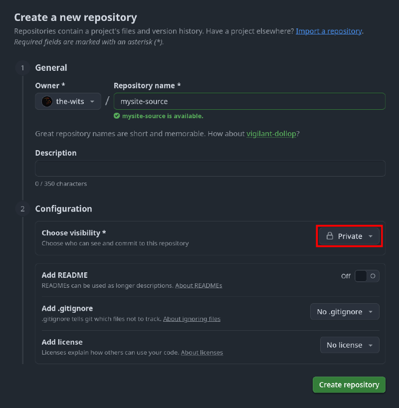 mysite-source): this is where we will store the site’s source code to keep it private